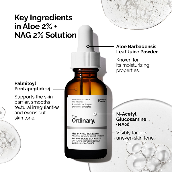 سرم Aloe 2% اوردینری با آبرسانی و هیدراته کردن پوست، خشکی و قرمزی طولانی مدت آن را از بین می برد. از طرفی دیگر علائم بعد از آکنه و قرمزی ناشی از تحریک را کاهش داده و با ترک هایی که بر جای می گذارد، مقابله می کند. این سرم با ترکیباتی مانند عصاره برگ آلوئه، N استیل گلوکوزامین و پپتید، ظاهر رنگ و بافت ناهموار پوست را بهبود می بخشد. سرم تسکین دهنده آلوئه 2% و ناگ 2% اردینری به تقویت عملکرد سد پوستی کمک می کند. همچنین ظاهر منافذ باز و علائم و قرمزی های پس از آکنه را کاهش می دهد.
