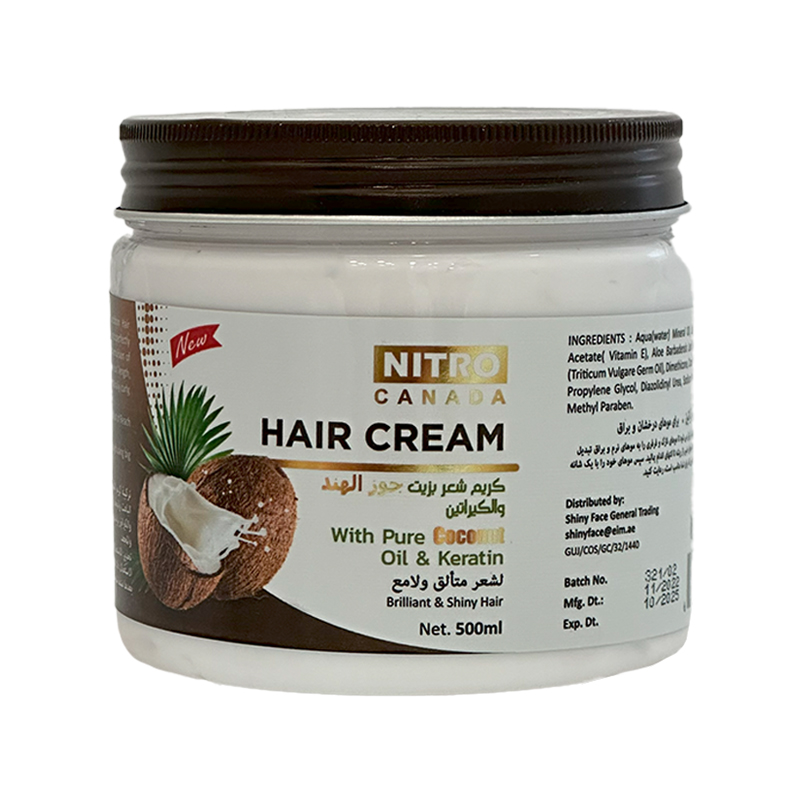 کرم موی نیترو (NITRO) مدل روغن نارگیل با حجم 500 میلی‌لیتر، محصولی مرطوب‌کننده و تغذیه‌کننده برای موهاست. این کرم مو حاوی روغن نارگیل است که به دلیل خاصیت‌های نرم‌کنندگی و آبرسانی، به تقویت و بازسازی موهای خشک، آسیب‌دیده و وزدار کمک می‌کند.