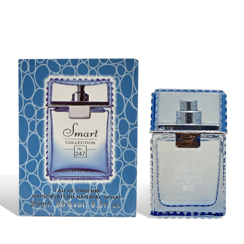 ادکلن اسمارت کالکشن 247 رایحه ورساچه او فرش رایحه و ادکلن معروف Versace Man Eau Fraiche که از برند ورساچه می باشد. ادکلن ورساچه او فرش یک عطر مردانه از خانواده عطر های چوبی آبی می باشد. که توسط شرکت Versace در سال ۲۰۰۶ به بازار عرضه شد. شادی و تمرکزی که پس از استشمام بوی ورساچه او فرش میگیرید ، تا مدت زمان زیادی در شما باقی خواهد ماند. پس از اولین اسپری از ورساچه او فرش روی پوست و محل نبضتان متوجه بوی هل ، لیمو ، نارنج ، چوب رزوود برزیلی و میوهی ستارهای خواهید شد. این ترکیب مرکباتی و چوبی ، طراوت و شادابی را در همان لحظات نخست به شما و اطرافیانتان هدیه میکند. پس از مدتی ، نت های میانی به آرامی وارد صحنه شده و پررنگ تر از نت های آغازی خود را نشان می دهند. این نت ها از ترخون ، مریمگلی ، چوب سدر و فلفل تشکیل شدهاند. استشمام بوی این ترکیب گیاهی و تند و تیز ، هیجان و انرژی فراوانی را در عمق روح شما ایجاد میکند. با گذشت زمان ، این نت ها جای خود را به نت های پایانی میدهند. نت های پایانی از عنبر ، زعفران ، مشک ، چوب درخت چنار و نت های چوبی مختلف ساخته می شوند.