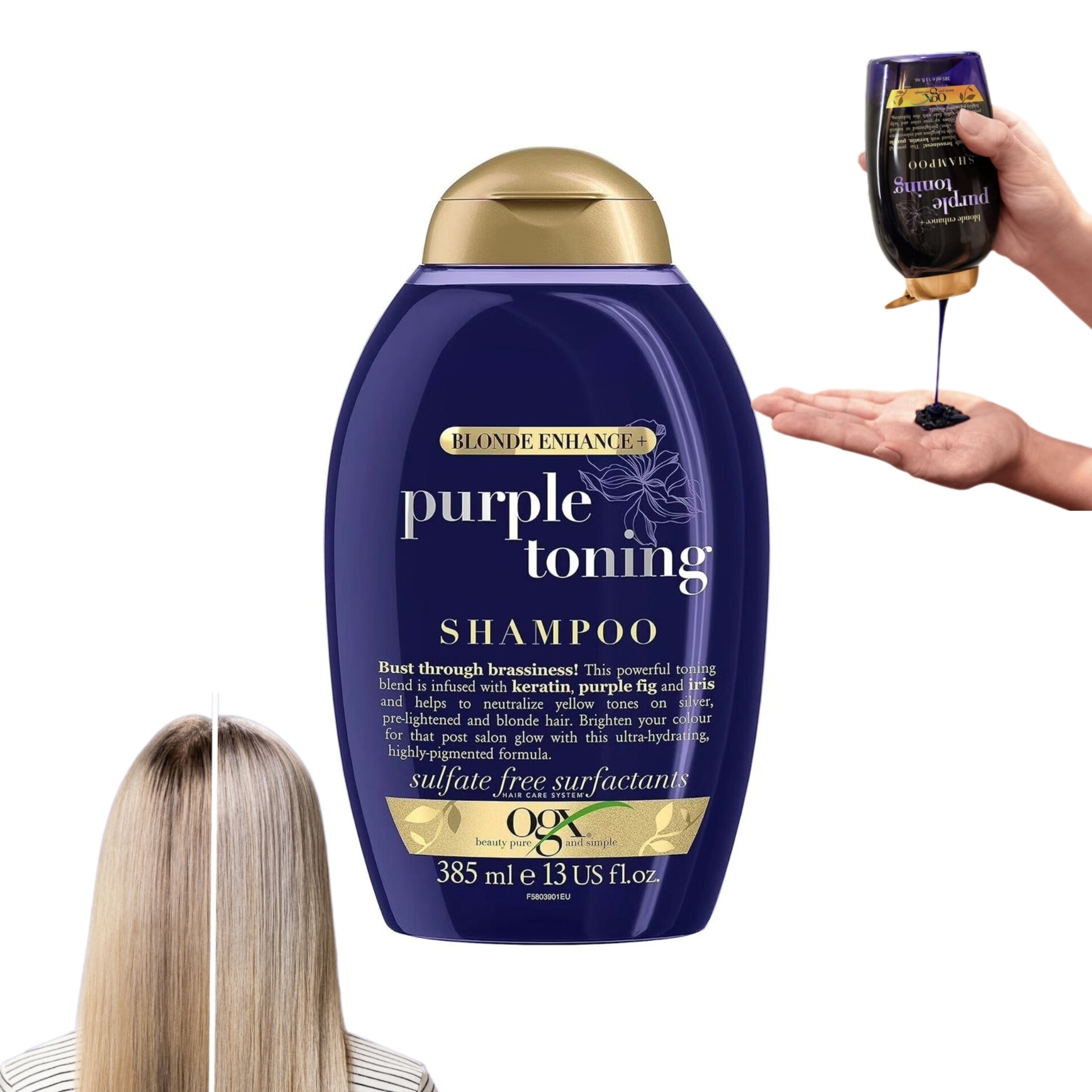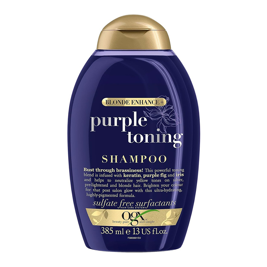 شامپو ضد زردی موهای بلوند او جی ایکس Ogx Purple Toning دارای فرمول ویژه برای خنثی کردن تناژ زرد رنگ و برنجی ناخواسته موهای بلوند، هایلایت، پلاتینه و خاکستری و ایجاد نمای درخشان مانند اینکه به تازگی آرایشگاه را ترک کرده ایم، است. شامپو ضدزردی او جی ایکس حاوی کراتین برای ترمیم و بازسازی موها، عصاره انجیر بنفش برای تغذیه مو و خنثی کردن زردی و همچنین عصاره گل زنبق برای تقویت رنگدانه های درخشان می باشد. در نتیجه با هر بار شستشو موهایی زیباتر، درخشان تر و تغذیه شده خواهیم داشت.