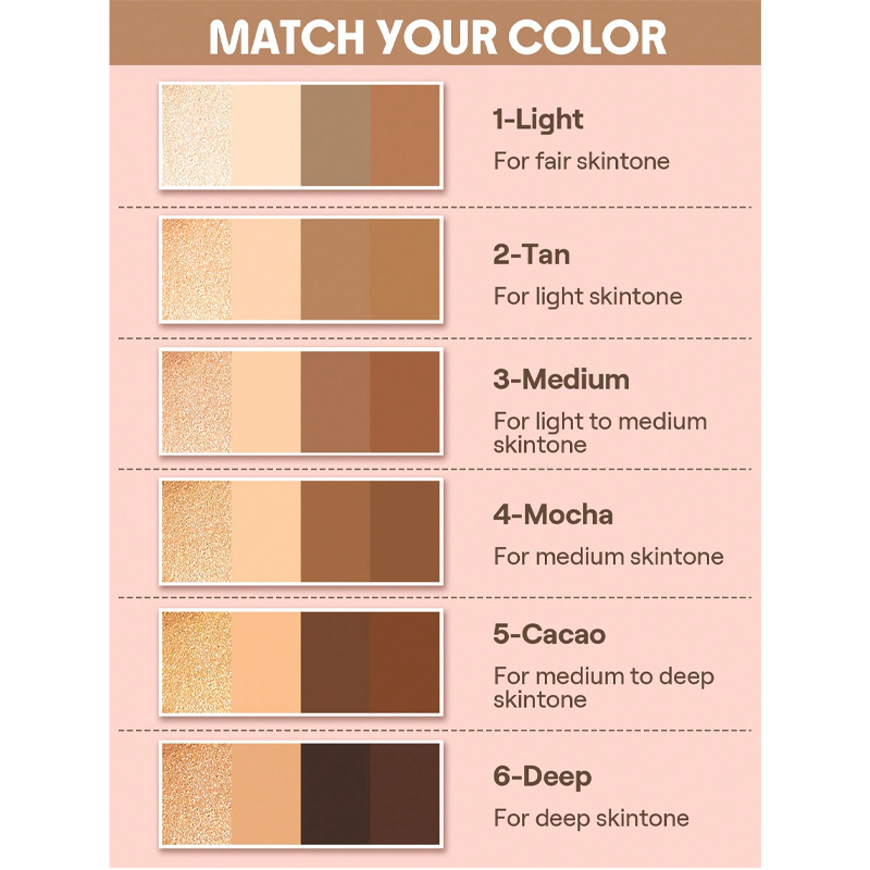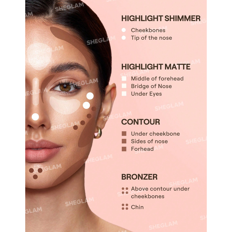 - دارای هایلایتر براق، هایلایتر مات، کانتور و برنزر در یک قلم