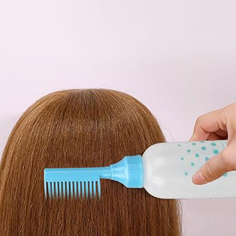 - این بطری بخاطر داشتن اپلایکاتور شانه ای بصورت خطی و مستقیم همزمان با شانه کشیدن مو، روغن را به کف سر میرساند
