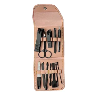ست ابزارهای مانیکور و پدیکور 12 عددی مدل کیف چرمی